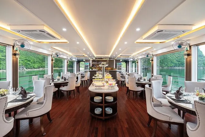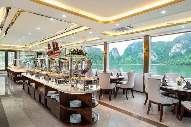 Se ofrece un almuerzo buffet con platos vietnamitas de mariscos y algunas opciones occidentales a bordo.