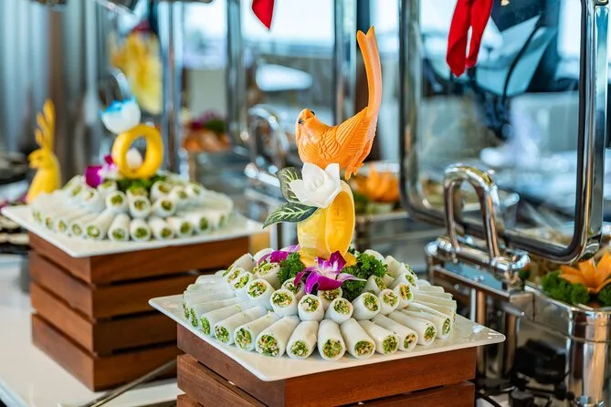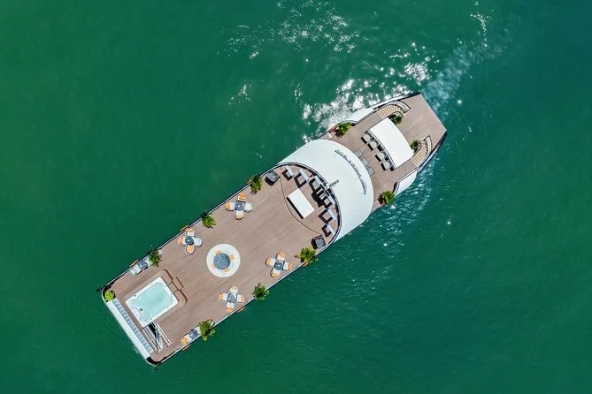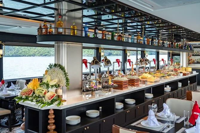 El tour incluye visita a la Cueva de la Sorpresa, baño en la isla Titop, kayak o paseo en bote de bambú cerca de la cueva Luon, y buffet a bordo.