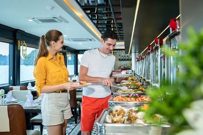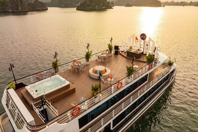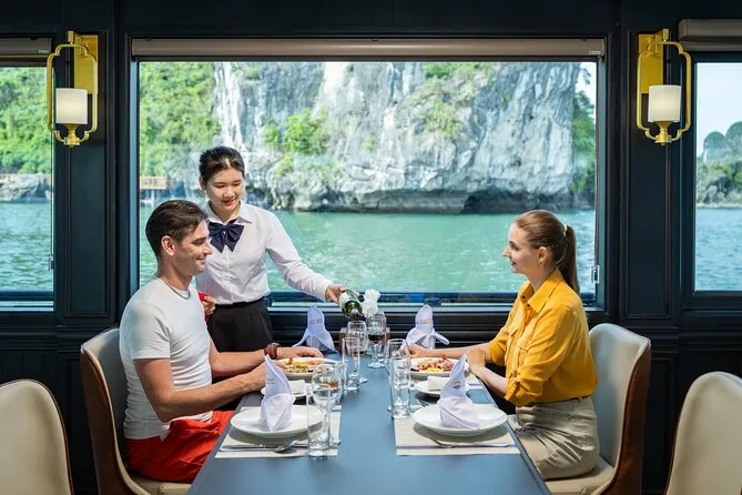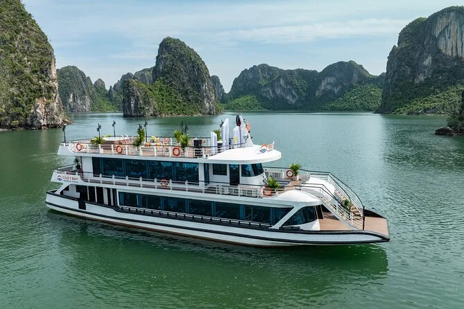 Tu día incluye transporte ida y vuelta por autopista desde hoteles en el Barrio Antiguo de Hanoi (o punto de encuentro en la Ópera de Hanoi), entradas a la Cueva de la Sorpresa y la isla Titop, guía en inglés durante todo el recorrido, todas las actividades como kayak o paseo en bote de bambú, además de un gran buffet a bordo y snacks al atardecer antes de regresar por la noche.