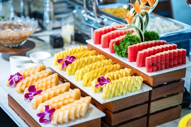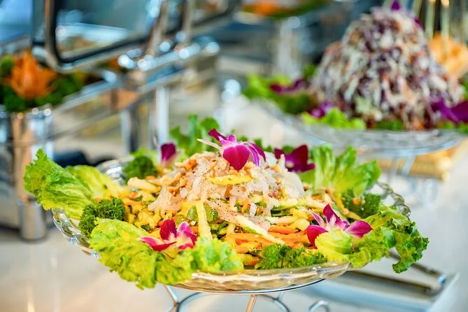 Sí, se sirve un buffet con más de 30 platos a bordo del crucero.