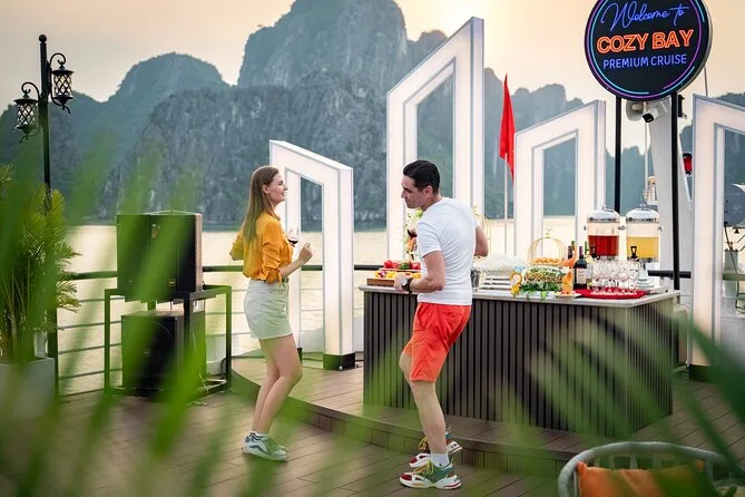 El kayak cerca de la cueva Luon fue mi parte favorita, aunque luego mis brazos protestaron. Había unos pececillos diminutos que se movían justo bajo la superficie —casi se me cae el remo tratando de mostrárselos a mi amigo. De vuelta en el barco, hubo una especie de “fiesta” al atardecer con té y chips de camarón (comí demasiados) mientras todos descansaban en el jacuzzi de la cubierta o simplemente miraban el cielo tornarse rosa detrás de los acantilados. Alguien puso música en su móvil; no era nada sofisticado, pero encajaba perfecto.