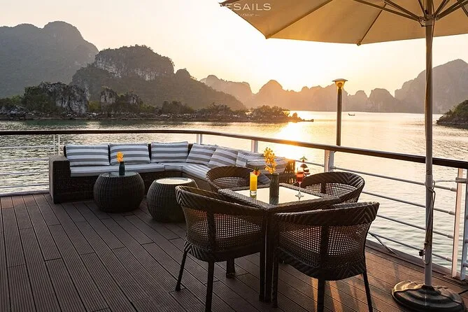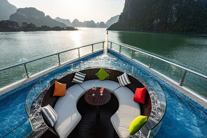 Tu día incluye recogida en hotel en el Barrio Antiguo de Hanoi en limusina, entradas para ambas bahías, guía de habla inglesa durante todo el tour, opciones de kayak o bote de remos en Lan Ha, clase práctica de cocina (con snacks), uso de jacuzzi exterior en la proa del barco si quieres, y un almuerzo de fusión vietnamita antes de volver a Hanoi con comodidad.
