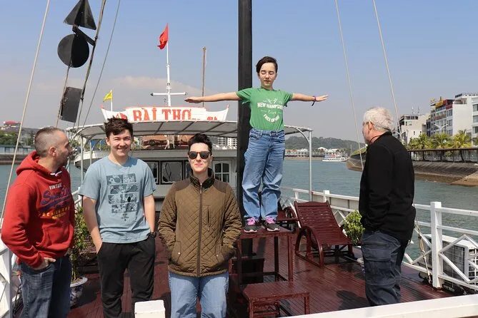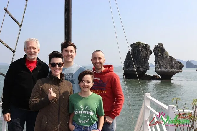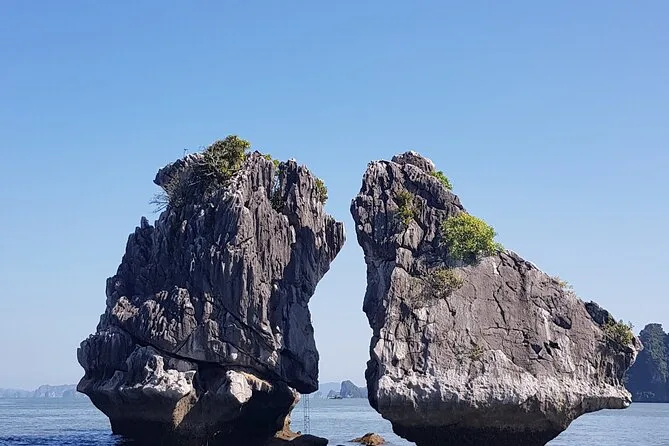Los palillos tintineaban mientras nuestro guía, Hieu, repartía almejas al vapor — apenas había notado la brisa salada cuando ya señalaba la isla Hon Ga Choi por la ventana. Dos rocas inclinadas una hacia la otra como viejos amigos. Salimos temprano de Hanoi esa mañana (me quedé dormido después de pasar los arrozales) y cuando subimos a nuestro barco privado en la marina de Tuan Chau, el aire tenía esa dulzura pegajosa que se siente cerca del mar en el norte de Vietnam. Recuerdo pensar lo rápido que se fue el ruido de la ciudad detrás de nosotros.