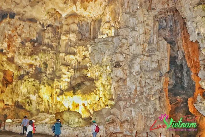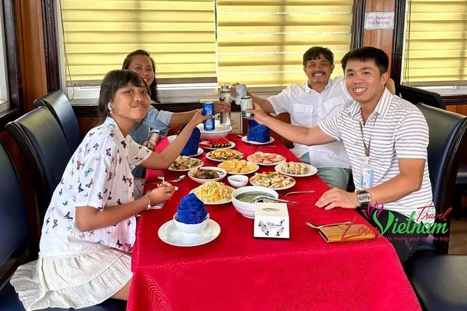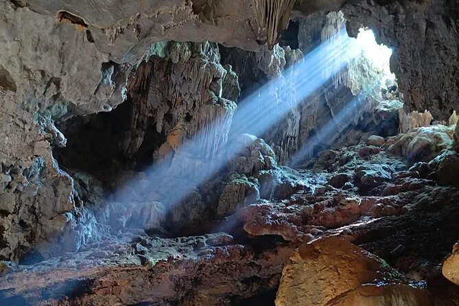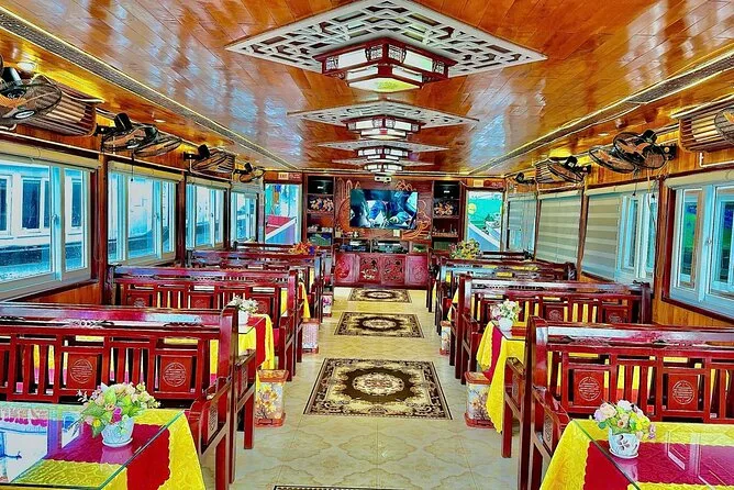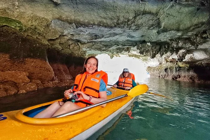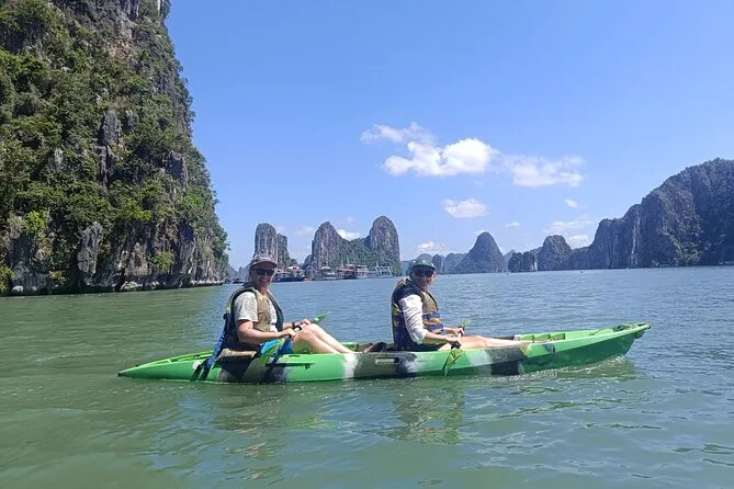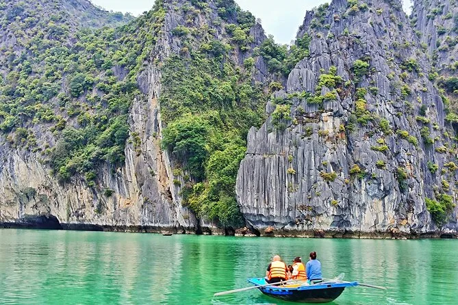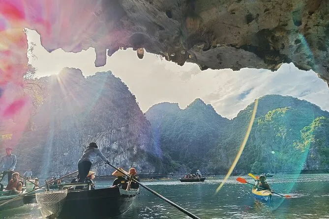 Tu día incluye recogida en hotel en el casco antiguo de Hanoi en coche o van moderna por autopista, agua embotellada a bordo, entradas para la bahía de Halong y la cueva Thien Cung, elección entre kayak o paseo en bote de bambú con pescador local en la aldea Ba Hang, almuerzo de mariscos frescos (con opciones vegetarianas si las solicitas antes), guía en inglés durante todo el recorrido y regreso al hotel en Hanoi por la tarde.