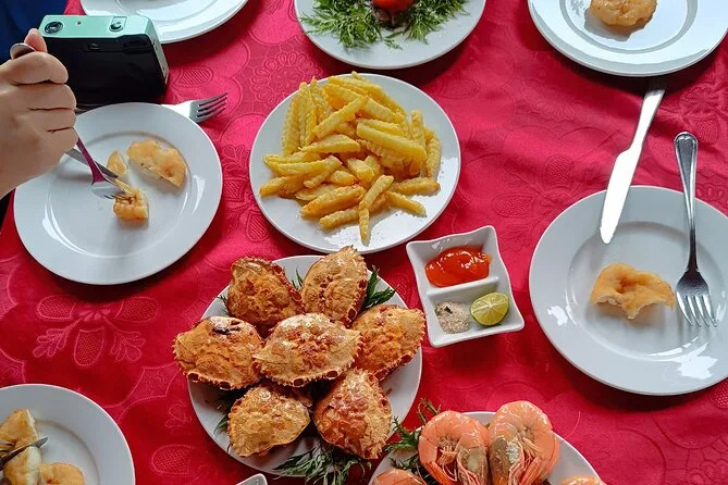 Se ofrece un almuerzo con mariscos frescos; hay opciones vegetarianas si las pides con anticipación.