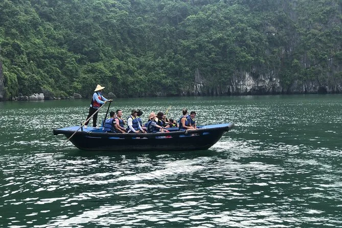 Tu día incluye recogida en el puerto de la ciudad de Halong, entradas en toda la bahía incluyendo la cueva Sung Sot y la isla Titop, opción de kayak o paseo en bote de bambú, y un almuerzo de mariscos fresco servido a bordo antes de regresar al puerto por la tarde.