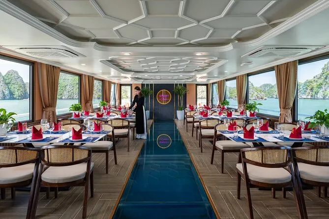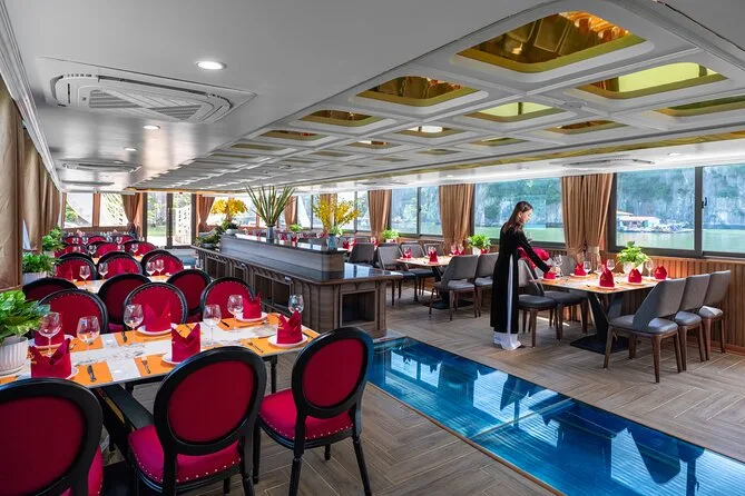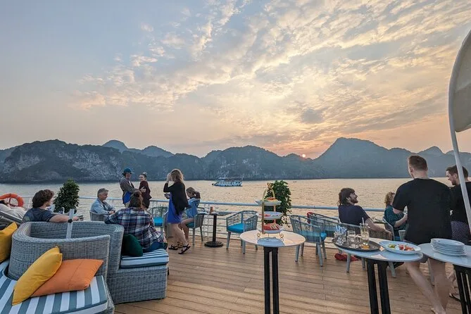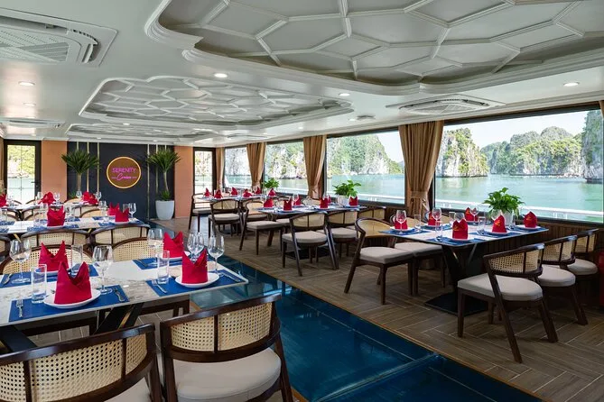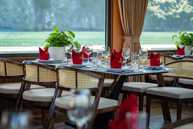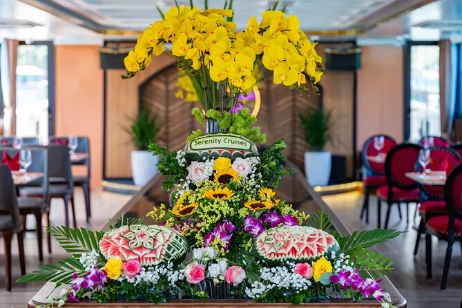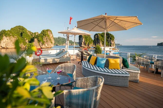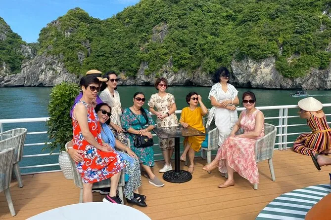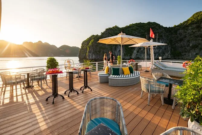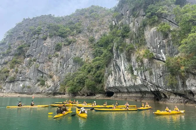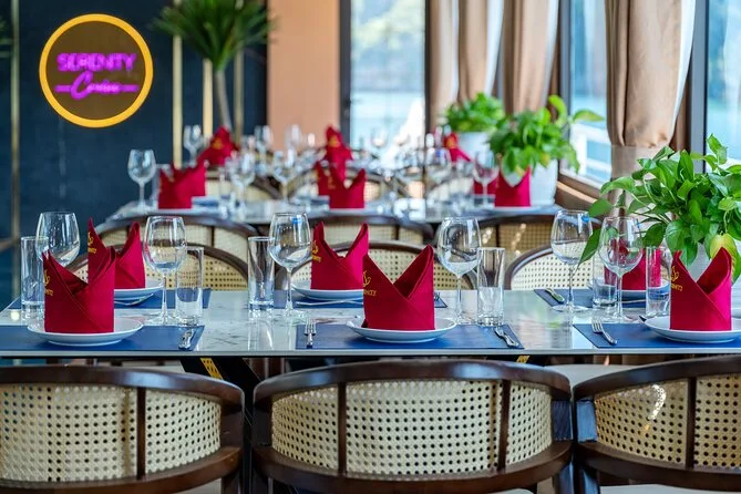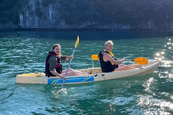 Tu día incluye traslados ida y vuelta desde el Barrio Antiguo de Hanoi (o desde Hai Phong o Cat Ba), entradas para Lan Ha Bay y el pueblo Viet Hai, uso de kayaks y equipo para nadar (se recomienda chaleco salvavidas), bebida de bienvenida al subir al Serenity Cruise, almuerzo buffet o menú según el tamaño del grupo, agua embotellada durante el recorrido y guía local vietnamita/inglés experimentado que te acompaña hasta la vuelta al hotel por la noche.
