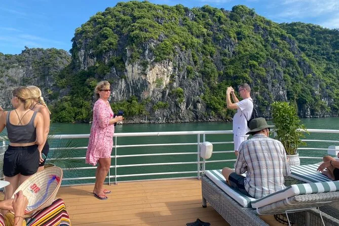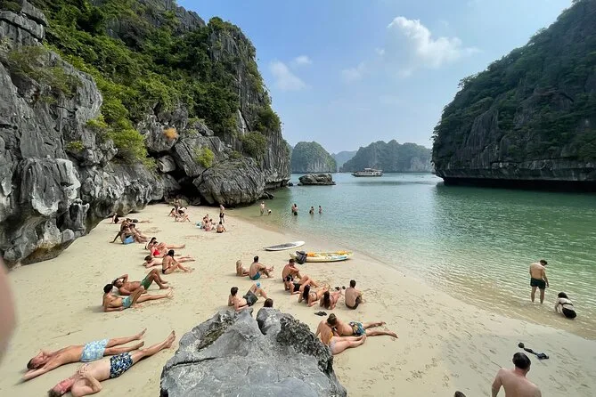 Incluye kayak, nado, saltos desde el barco, tobogán desde la cubierta, paseo en bici o coche eléctrico por Viet Hai y masaje de pies con peces.
