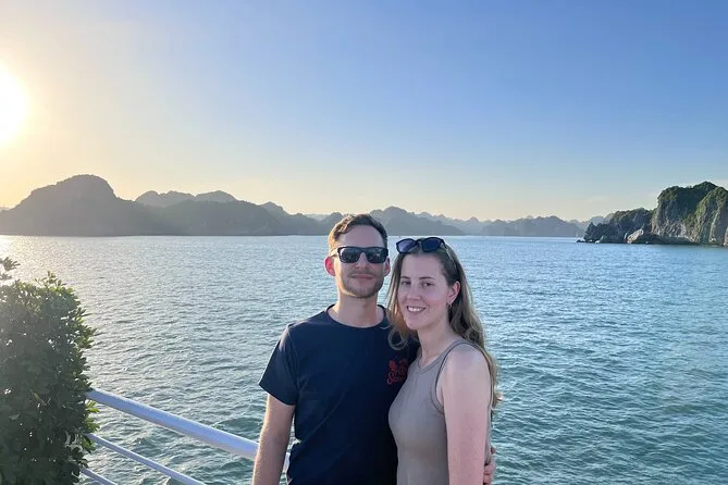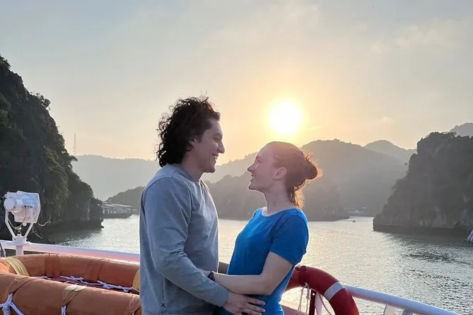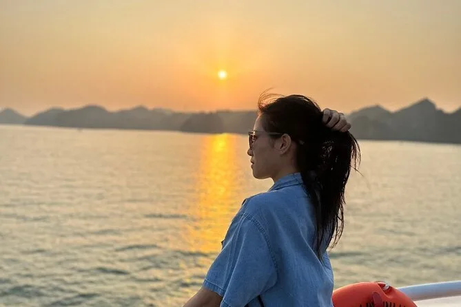Tras el almuerzo atracamos en el pueblo Viet Hai. Pedalear por esos senderos estrechos entre palmeras se sentía como un sueño — gallinas corriendo por todos lados, viejos saludando desde sus porches. Hubo un momento curioso donde metes los pies en unos tanques para un masaje con peces; más que cosquillas, fue divertido y todos terminamos riendo como niños. Más tarde hicimos kayak bajo unos arcos de piedra caliza en la Bahía de Lan Ha — el agua tan verde que parecía irreal en las fotos — y la gente empezó a tirarse del barco solo porque sí. Yo dudé, pero al final me lancé (el choque frío y luego pura alegría). El sol empezó a caer rápido, iluminando esas islas irregulares con tonos dorados. A veces aún recuerdo esa vista cuando estoy atrapado en el metro de vuelta a casa.