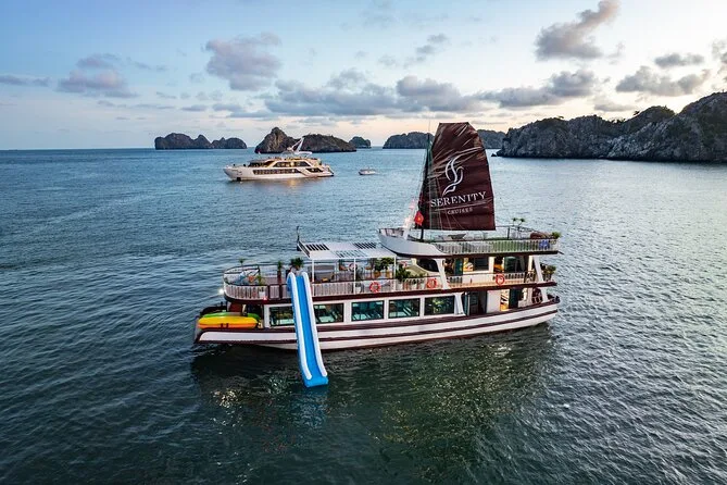 Tu día incluye traslados ida y vuelta desde hoteles en Hanoi o Cat Ba, todas las entradas a los puntos de interés en la bahía Lan Ha, equipo de kayak para explorar las cuevas, tiempo para nadar o hacer snorkel según la marea, un almuerzo completo de mariscos vietnamitas servido a bordo (opciones vegetarianas disponibles), y la guía amable de un local que habla inglés, para regresar cómodo al atardecer.