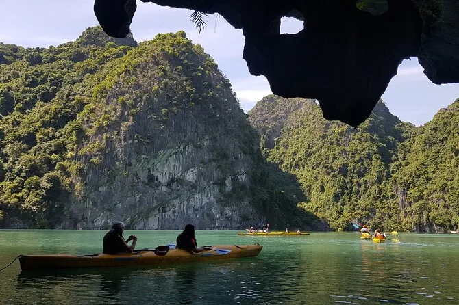 Incluye kayak en la zona de las cuevas Oscura y Brillante, baño en la playa Ba Trai Dao (Islotes de los Tres Duraznos), snorkel si la marea lo permite y paseos para admirar el paisaje desde el crucero.
