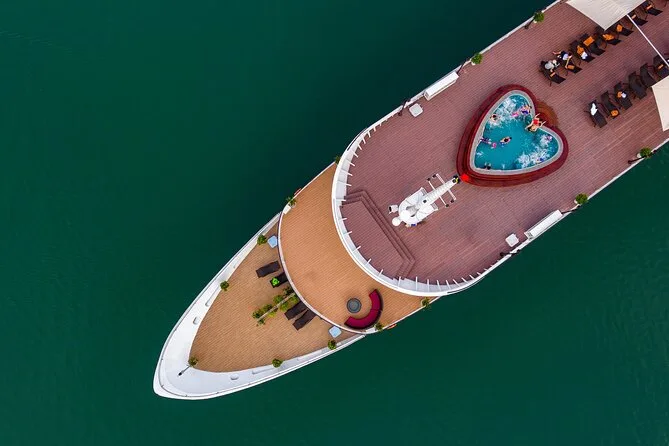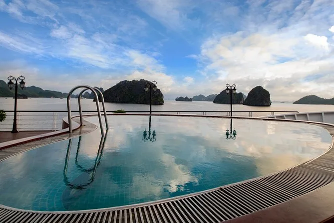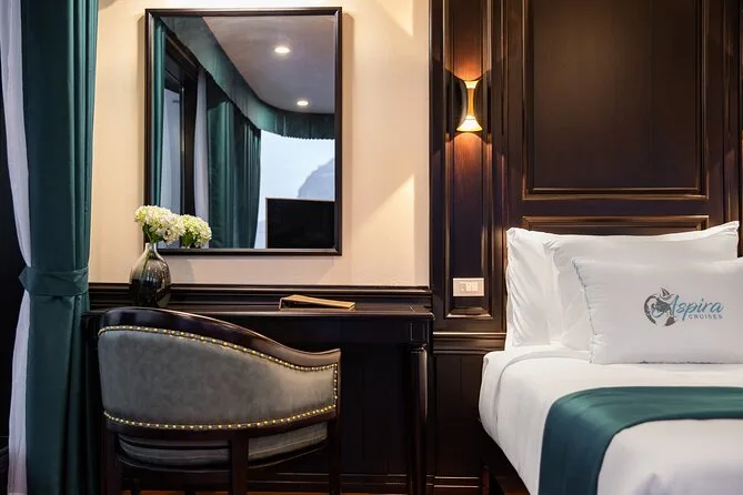 Tu viaje incluye traslado ida y vuelta desde hoteles del Barrio Antiguo de Hanoi, todas las entradas a las atracciones de las bahías de Halong y Lan Ha, guía local de habla inglesa durante toda la estancia, cuatro comidas frescas incluyendo brunch antes de desembarcar, sesiones diarias de Tai Chi al amanecer en la cubierta, clase práctica de cocina con la tripulación (los rollitos son más difíciles de lo que parecen), kayak o paseo en bote de bambú guiado por locales en la Cueva Oscura y Clara, además de acceso a instalaciones como gimnasio y mini piscina—servicios de masaje disponibles por un costo extra si quieres darte un capricho antes de regresar a casa.