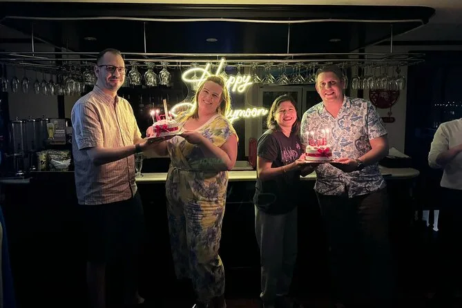 El primer “wow” real llegó en la Cueva Oscura y Clara. Elegimos hacer kayak (mis brazos aún lo recuerdan) mientras otros optaron por que los llevaran en botes de bambú guiados por locales. Todo estaba en silencio, salvo el sonido de los remos y algún que otro canto de pájaros rebotando en los acantilados de piedra caliza. Ya en el barco, hubo una fiesta al atardecer — todos relajados con sus bebidas mientras el cielo se pintaba de ese azul-rosado que sólo ves cerca del agua. Más tarde Minh nos enseñó a preparar rollitos frescos (“¡Enrollen más apretado!” repetía), pero los míos parecían burritos tristes. Eso sí, estaban deliciosos.