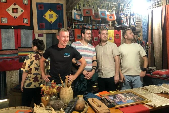 Almorzamos cerca de Tam Son — perdí la noción del tiempo — arroz con cerdo en casa de una familia que casi no hablaba inglés pero sonreía mucho. Luego visitamos el pueblo de lino Lung Tam. Las mujeres me dejaron tocar el lino áspero antes de teñirlo; sus manos se movían rápido sobre los telares. Li se rió cuando intenté decir “xin chào” en su dialecto (seguro lo arruiné). Esa noche en el pueblo de Du Gia, cenamos arroz pegajoso y vino de maíz junto al fuego humeante de la cocina con nuestra familia anfitriona. El silencio afuera era inmenso — solo ranas y risas lejanas de niños persiguiéndose entre los arrozales.