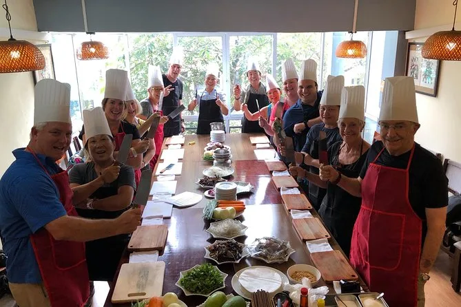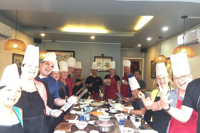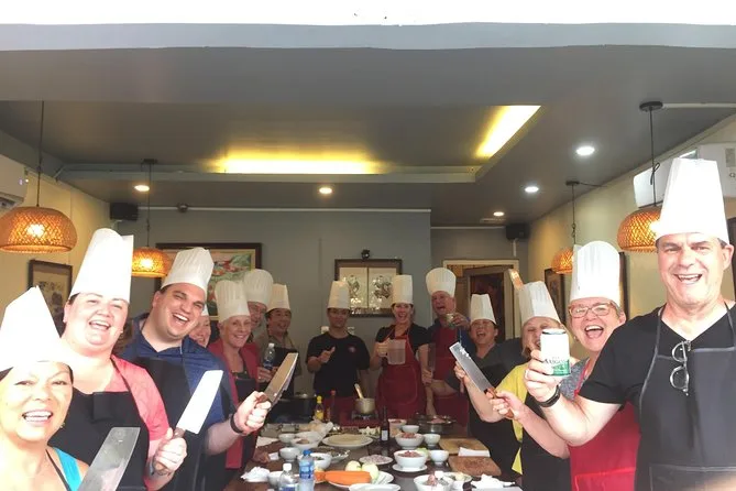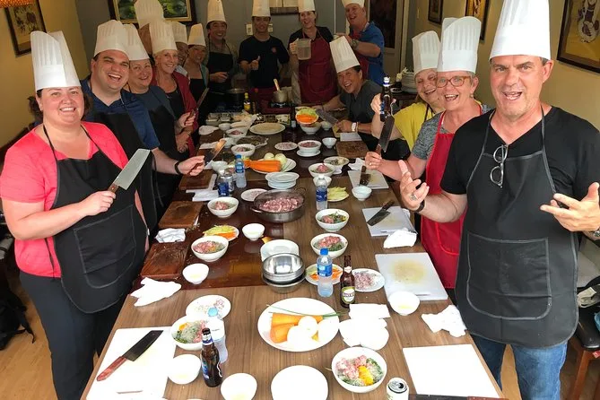 Tu día incluye conocer al chef local en la calle Hang Buom, explorar un mercado húmedo cercano para elegir ingredientes frescos juntos, preparar tres platos vietnamitas y café con huevo en el restaurante, y disfrutar de tu comida con una bebida de cortesía antes de seguir explorando Hanoi.