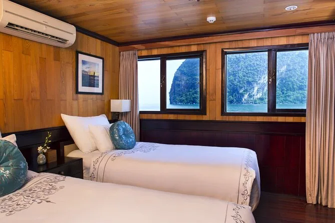 Remarás bajo arcos de piedra caliza, pedalearás por pueblos de Cat Ba, nadarás en playas escondidas y probarás la auténtica cocina vietnamita—todo desde tu propio camarote cómodo en este crucero de tres días por la Bahía de Halong.