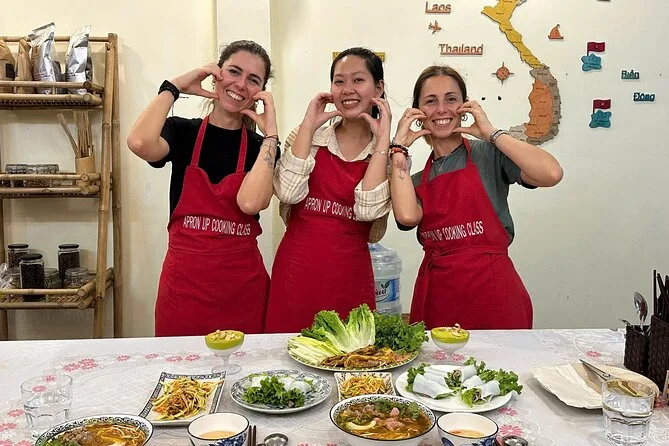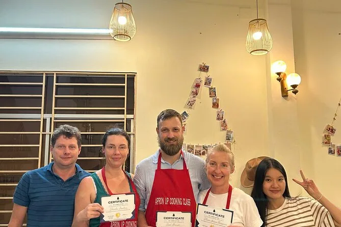Tu día incluye encuentro en la calle Nguyen Ba Lan en Da Nang para un tour guiado por el mercado para comprar ingredientes; todos los utensilios de cocina; preparación práctica de cinco platos locales; café o té; almuerzo o cena juntos con fruta y vodka de arroz; además de tu recetario y certificado antes de despedirte.