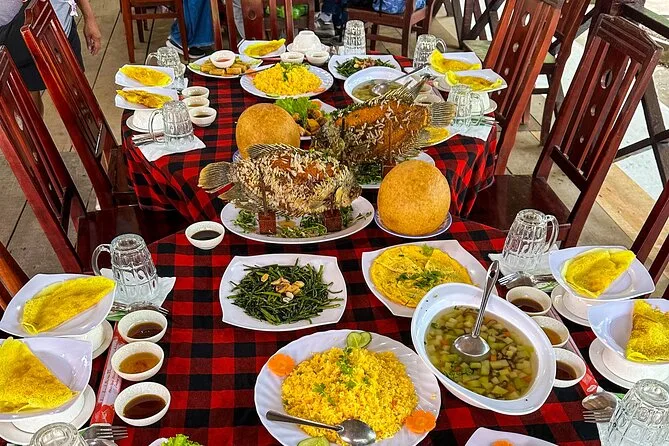 Tu día incluye recogida en vehículo con aire acondicionado desde Ho Chi Minh, todas las entradas, guía local de habla inglesa, almuerzo en restaurante frente al río con platos tradicionales vietnamitas, una botella de agua mineral por persona y muchas oportunidades para conocer a otros viajeros antes de regresar cómodamente al atardecer.