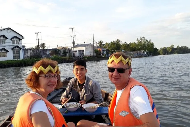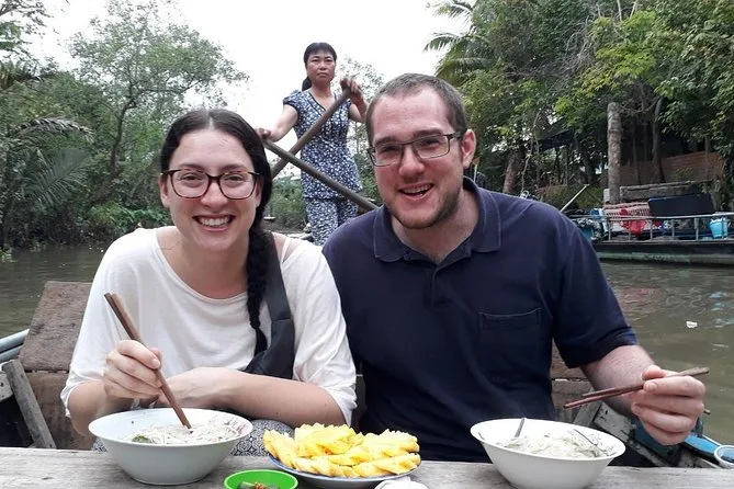 Tu día incluye recogida y regreso al hotel en Can Tho, todas las entradas, un guía local de habla inglesa que conoce a todos en el río (o eso parece), desayuno tradicional con bebidas como agua de coco o café vietnamita fuerte servido en un barco en el mercado Cai Rang, degustación de frutas frescas de temporada en un huerto, snacks durante el recorrido e incluso una visita a una fábrica de fideos de arroz antes de regresar.