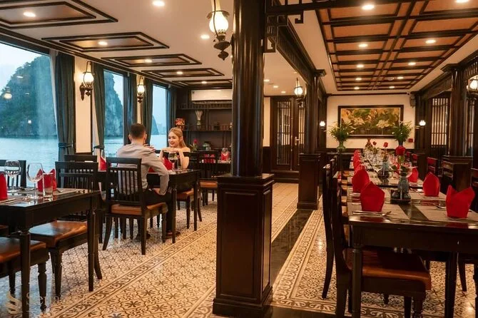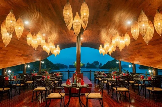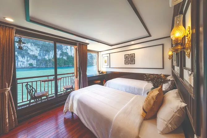 Tu viaje incluye traslado ida y vuelta desde hoteles en Hanoi (si eliges esta opción), todas las entradas en Ha Long y Lan Ha Bay, todas las comidas a bordo incluyendo almuerzos de llegada y salida, una clase práctica de cocina vietnamita con ingredientes frescos, sesiones guiadas de kayak por cuevas y entre islas de piedra caliza, paradas para nadar en aguas cristalinas, cabina con balcón privado para mayor comodidad y la opción de probar Tai Chi o pesca de calamares si te animas.