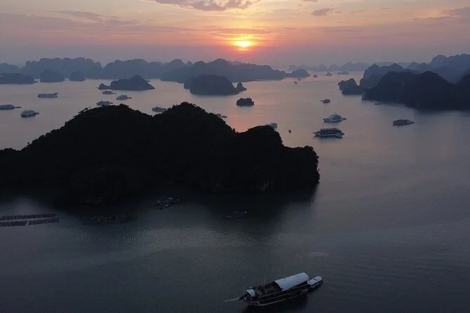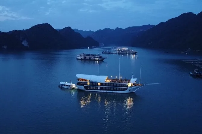 Remarás en kayak por cuevas escondidas en Lan Ha Bay, navegarás bajo arcos de piedra caliza, aprenderás a hacer rollitos vietnamitas en una divertida clase de cocina y despertarás con Tai Chi en cubierta mientras la niebla se eleva sobre aguas esmeralda. Con todas las comidas incluidas y traslado desde Hanoi, es una escapada nocturna que recordarás mucho después de volver a tierra.