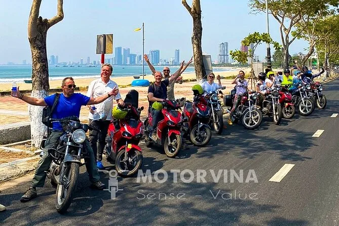 Tu día incluye moto con gasolina para recorrer el Hai Van Pass en el centro de Vietnam; equipo de seguridad de alta calidad como cascos ABS y guantes; todas las entradas, incluyendo Montañas de Mármol; café o té en paradas locales; seguro de viaje; y un almuerzo relajado de mariscos frescos antes de volver al atardecer, cansado pero feliz.