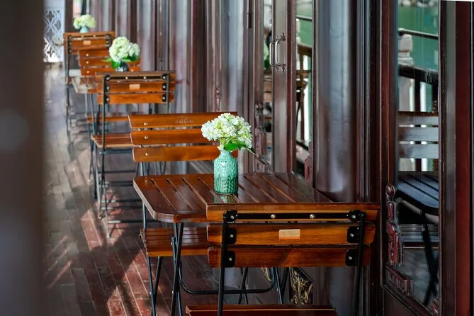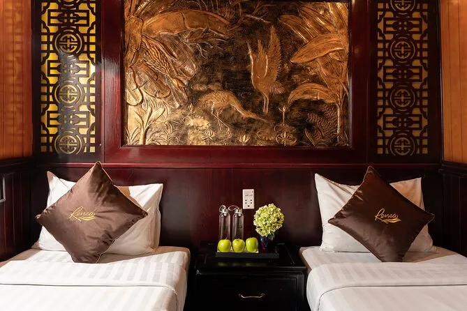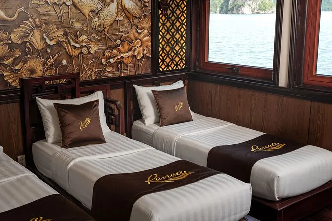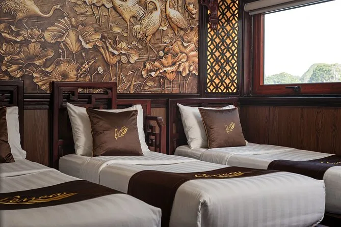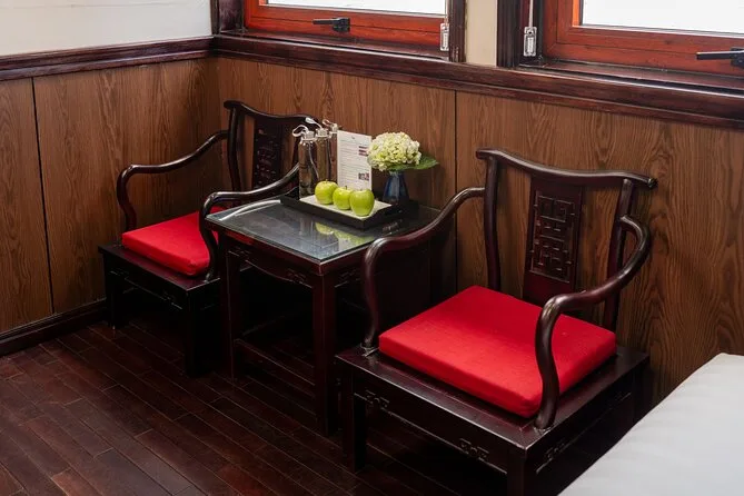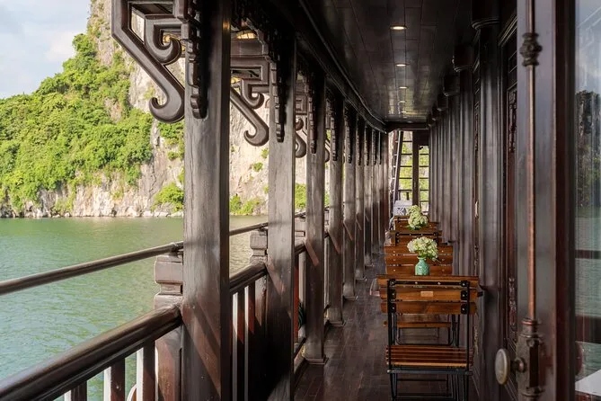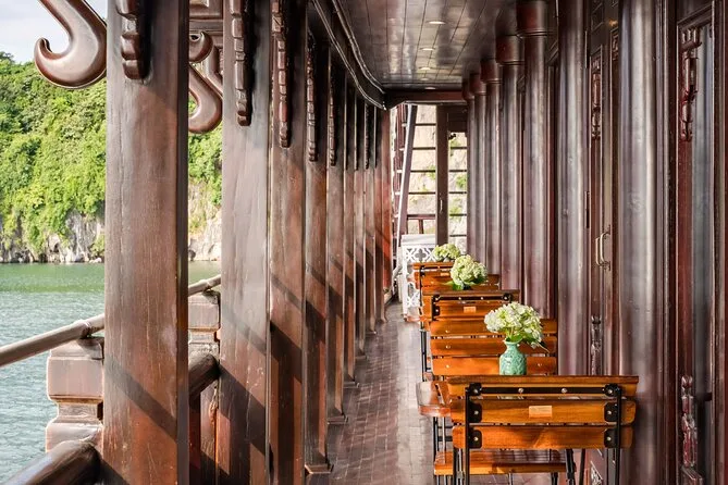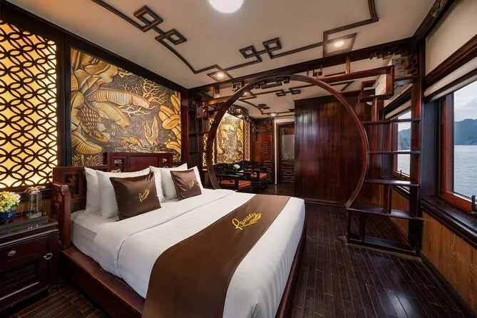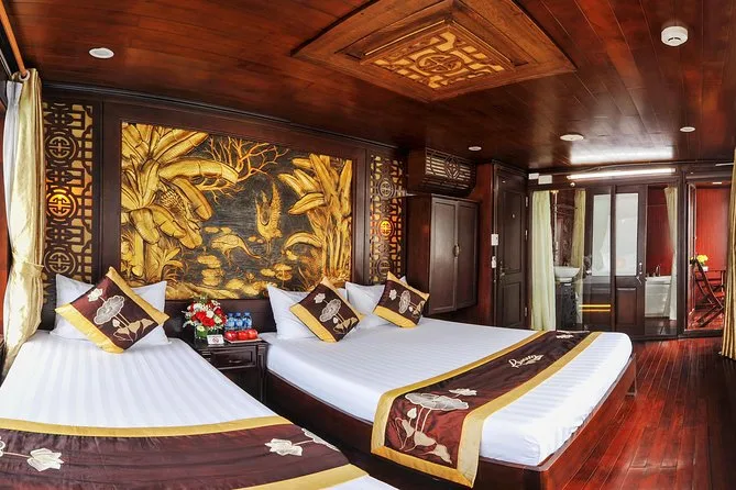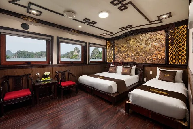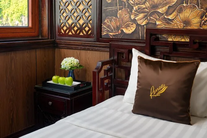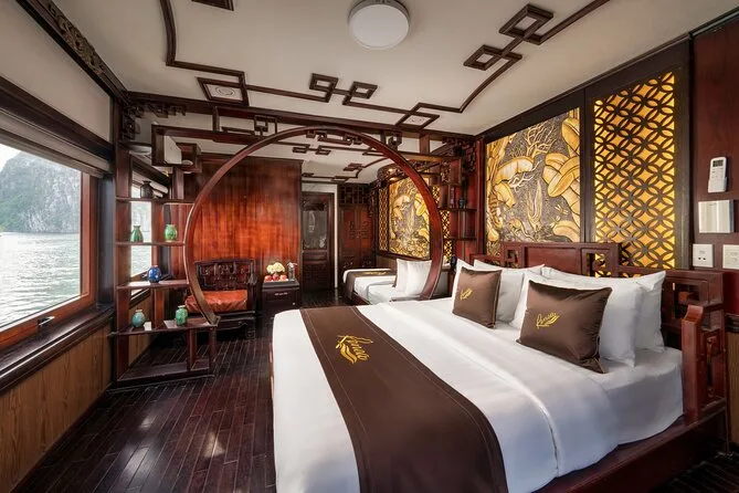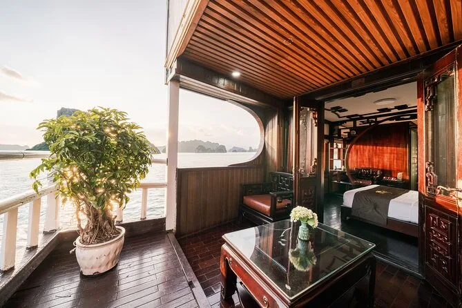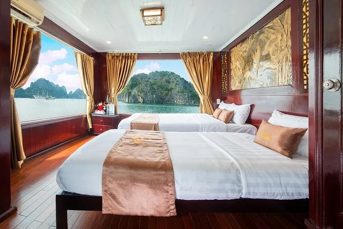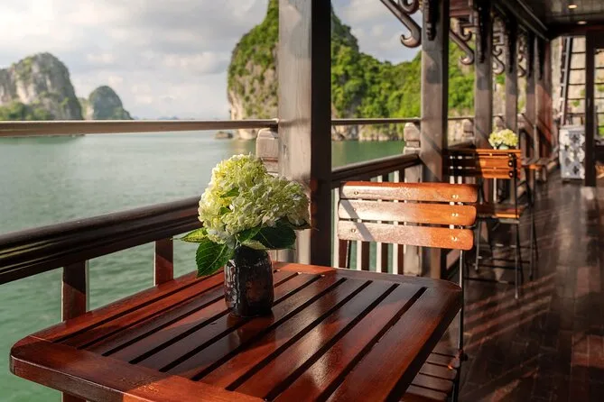Tu viaje incluye recogida ida y vuelta desde Hanoi en bus o limusina moderna; todas las comidas a bordo (dos almuerzos, una cena, un desayuno); kayak en la isla Cap La; baño en el mar; sesión de Tai Chi; fiesta al atardecer; pesca de calamares; juegos de mesa; visita guiada a la cueva Thien Canh Son; clase práctica de cocina vietnamita; cabina deluxe con vista al mar y balcón privado; guía en inglés durante todo el recorrido; bebida de bienvenida y toalla fría al embarcar, para luego regresar cómodo a Hanoi por la tarde.