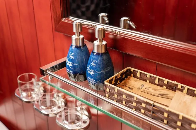 Por la noche hubo una especie de “fiesta” al atardecer, pero más que fiesta fue gente compartiendo historias con fruta y cerveza mientras el cielo se pintaba de rosa tras los acantilados. Algunos intentaron pescar calamares desde la popa; yo me quedé mirando y riendo cuando uno casi se cae al agua (pero no pasó). Mi cabina tenía un balcón pequeño donde podías sentarte con un té y escuchar solo el agua rozando el casco. No sé por qué ese momento se me quedó tan grabado.