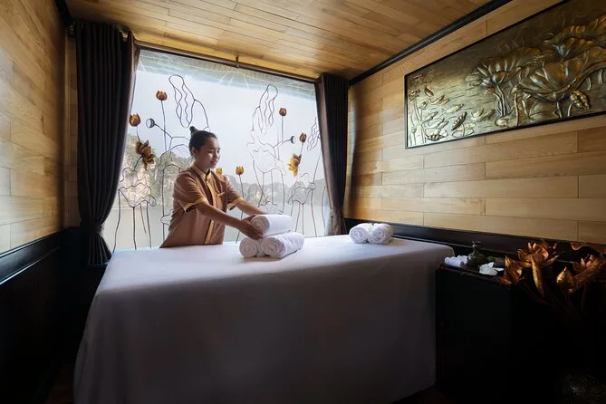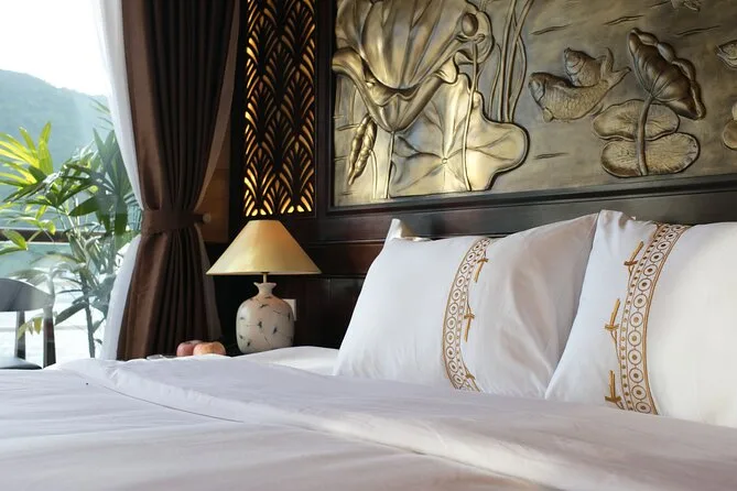 Navega por las aguas tranquilas de Halong y Lan Ha Bay en un crucero nocturno que incluye paseos en bote de bambú por cuevas, kayak entre acantilados de piedra caliza, paradas para nadar y una clase práctica de cocina vietnamita con locales. Ríete con los rollitos de primavera, prueba Tai Chi al amanecer y disfruta de momentos de paz en la cubierta que recordarás mucho después de volver a casa.
