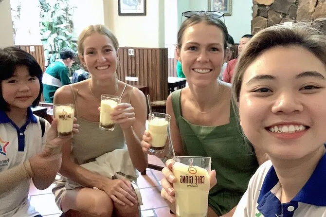 Tu día incluye recogida gratuita en hoteles del Old Quarter de Hanoi, un guía local privado que te llevará por puestos de comida y cafés (sin propinas), además de todas las degustaciones—desde platos salados hasta postres y café de huevo—con tiempo para pasear entre bocado y bocado antes de volver cuando quieras.