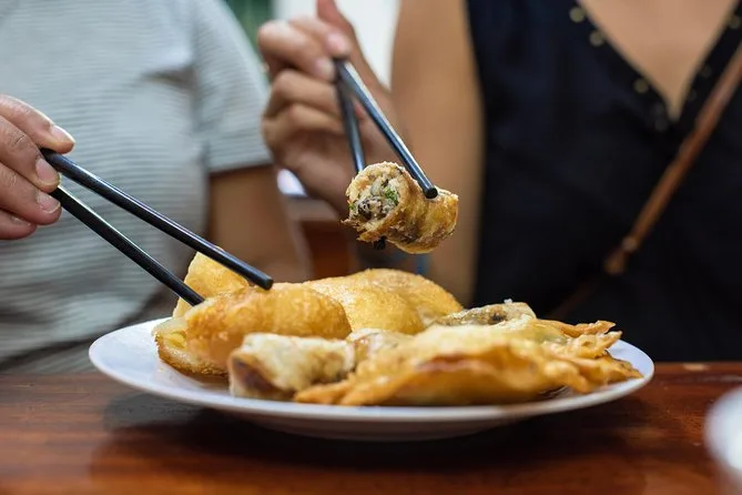 Recorrerás el Old Quarter de Hanoi con un guía local, probando hasta ocho platillos callejeros—desde el humeante bánh cuốn hasta crujientes pancakes—y bebidas como vino de arroz y café con huevo. Risas en mesas compartidas, historias detrás de cada plato y sorpresas en el camino. Al final, te sentirás lleno y conectado con este rincón vibrante de Hanoi.
