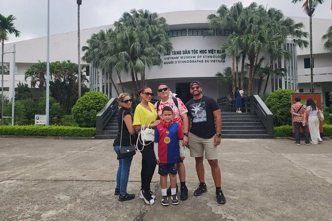 En el Mausoleo de Ho Chi Minh, la gente hacía fila en silencio — casi sin conversación, solo un respeto solemne. No esperaba sentir mucho, pero ver a los guardias tan firmes me hizo pensar en la historia que pesa aquí. Minh nos contó sobre el árbol bodhi que Ho Chi Minh plantó cerca (seguro pronuncié mal, Li se rió cuando lo intenté). Caminar por su antigua casa fue algo íntimo, casi podías imaginarlo sentado junto a la ventana mirando el jardín. Luego visitamos el Museo de Etnología de Vietnam, mucho más grande de lo que pensé, con detalles por todos lados — cestas tejidas, telas vibrantes, pequeños zapatos alineados.