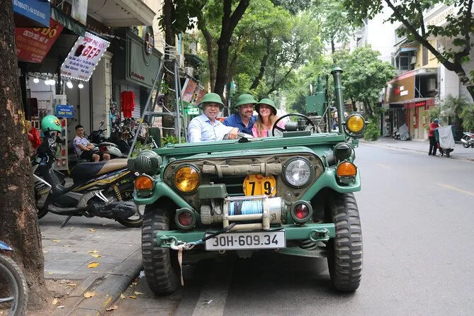 Tu día incluye recogida en hotel en un Jeep vintage del ejército estadounidense, todas las entradas a templos o museos que se visiten, guía local en inglés que conoce todos los atajos de Hanoi y un almuerzo tradicional vietnamita antes de regresar al punto de partida.