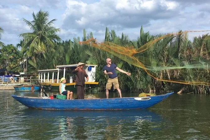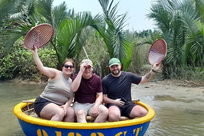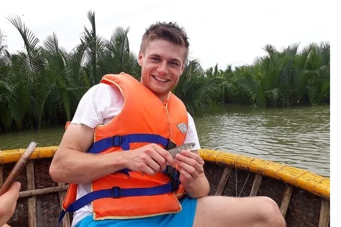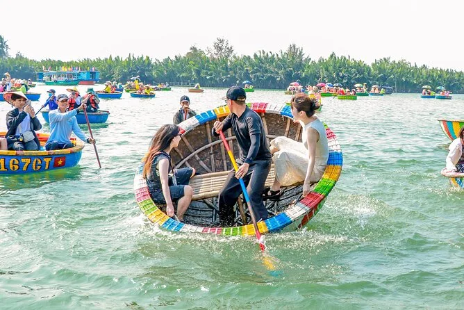 Tu día incluye recogida y regreso al hotel en el centro histórico o playas de Hoi An, entradas al bosque de coco de Cam Thanh, paseo en barco cesto tradicional con actividades como pesca de cangrejos y canciones populares, además de té y pasteles vietnamitas antes de volver cómodamente a tu hotel.