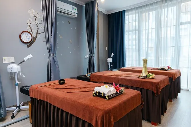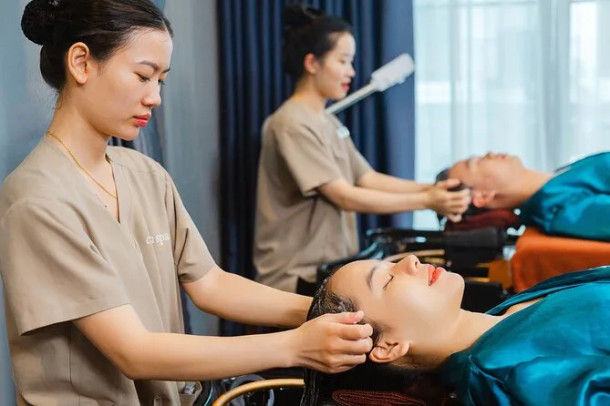 Entra en Cam On Spa de Hue para un ritual inspirado en la realeza: lavado herbal con masaje de cabeza, cuello y hombros, cuidado facial con jade y baño imperial de pies. Disfruta té local al llegar y panna cotta tras el tratamiento. Conversaciones amables y una paz que permanece mucho después.