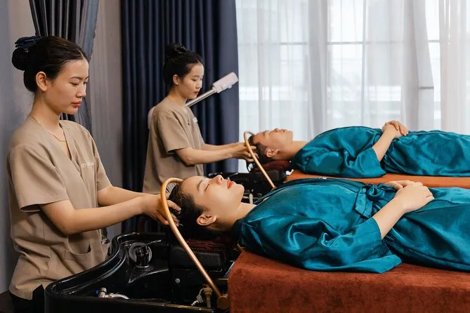 Tu visita incluye un lavado herbal recién preparado con masaje de cabeza, cuello y hombros durante una hora, seguido de treinta minutos de cuidado facial con jade y un baño imperial de pies de diez minutos. Además, te recibirán con té local o agua mineral y disfrutarás de panna cotta y más agua mineral como snack ligero antes de volver a las animadas calles de Hue.