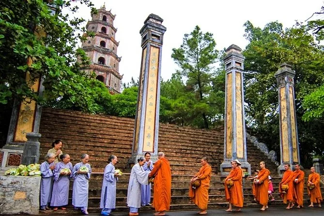 El itinerario incluye la Pagoda Thien Mu, la Ciudadela de Hue, el Puente y mercado de Thanh Toan, y las tumbas de Minh Mang y Khai Dinh.
