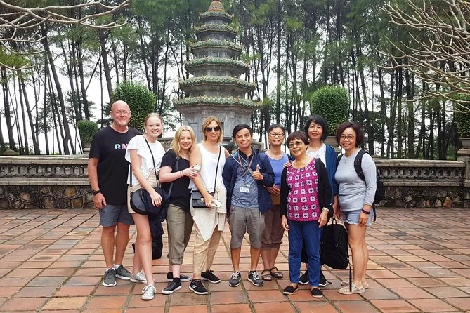 Tu día incluye recogida en hotel en vehículo con aire acondicionado, entradas a sitios clave como la Pagoda Thien Mu y las tumbas imperiales, paseo en barco dragón por el Río Perfume con guía local en inglés que comparte historias, y un almuerzo tradicional en restaurante local antes de regresar cómodamente al punto de partida.