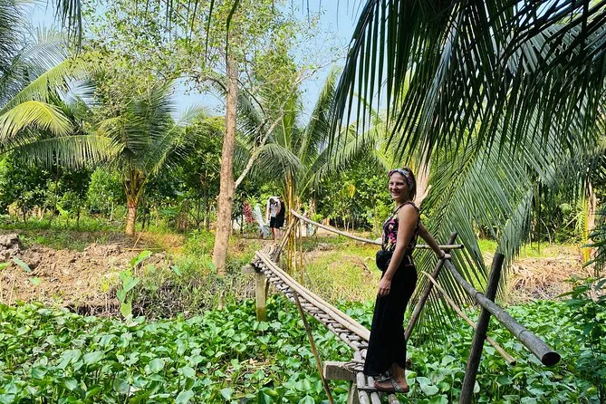 Navega por el bullicioso mercado flotante de Cai Rang al amanecer, desayuna en tu barco mientras los locales intercambian frutas, aprende a hacer fideos con una familia amable, recorre canales escondidos bajo palmeras y termina con chocolate y leche de cacao frescos en la única granja tradicional de Vietnam. Un día que te llena, en todos los sentidos.