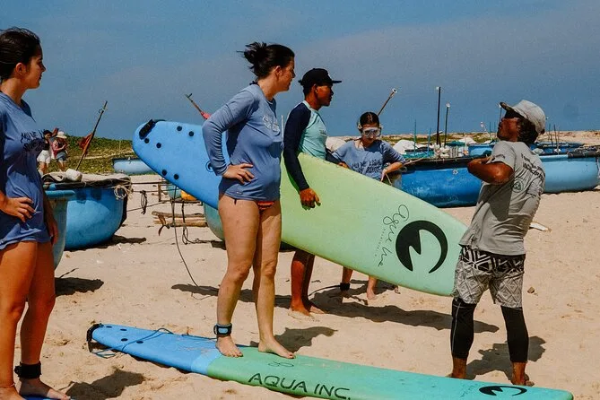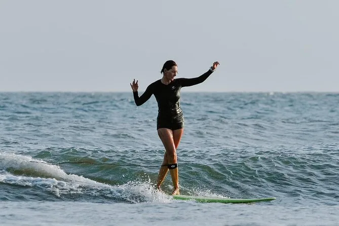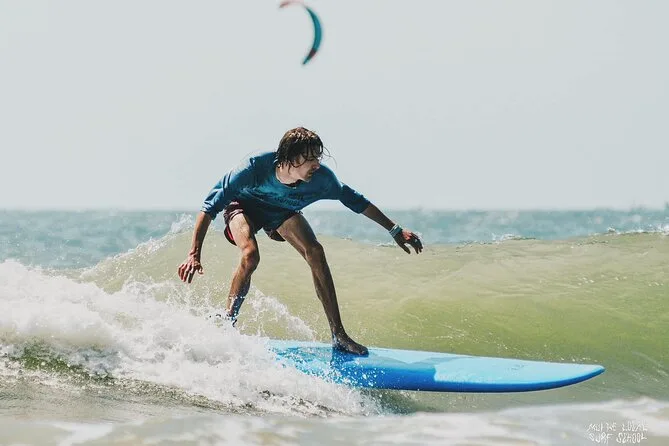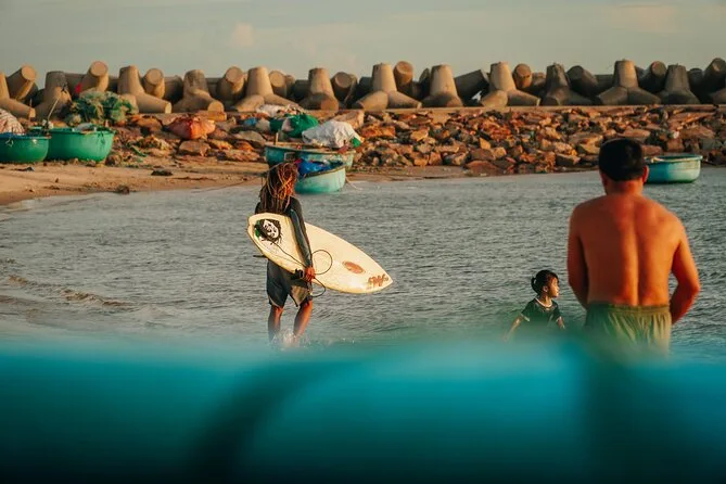 Tu tarde incluye todo el equipo de surf (longboard, camiseta lycra para proteger del sol, zinc especial para la cara), instrucción amigable de un guía local en la playa Little Buddha, y opciones flexibles de transporte —puedes seguir en moto o coordinar recogida desde Mui Ne antes de regresar tras el atardecer.
