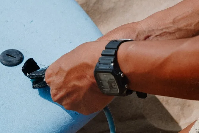 Usa traje de baño bajo la ropa; el protector solar está incluido, pero unas gafas de sol o gorra ayudan antes y después de surfear.