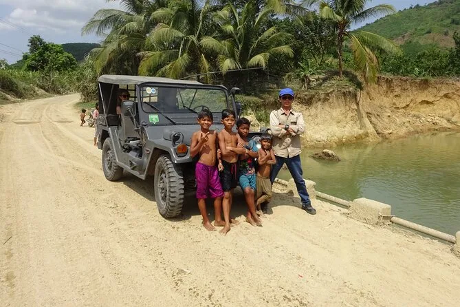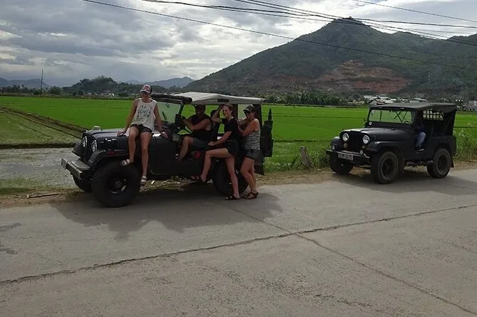 Recorre el campo de Nha Trang en Jeeps vintage con un guía local que comparte historias reales. Visita antiguas ciudadelas, conoce a los habitantes junto al río y disfruta un almuerzo BBQ bajo plataneras. Grupos pequeños y paradas flexibles para vivir momentos que se sienten, no solo se ven.