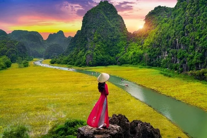 Desde la antigua pagoda Bai Dinh, pasando por los barcos de bambú en Trang An hasta la subida a la cueva Mua, esta excursión de un día desde Hanoi combina espiritualidad, paisajes y un poco de esfuerzo