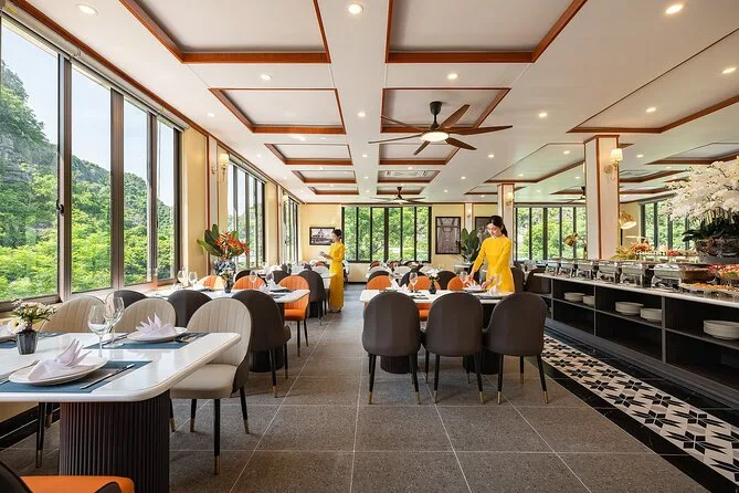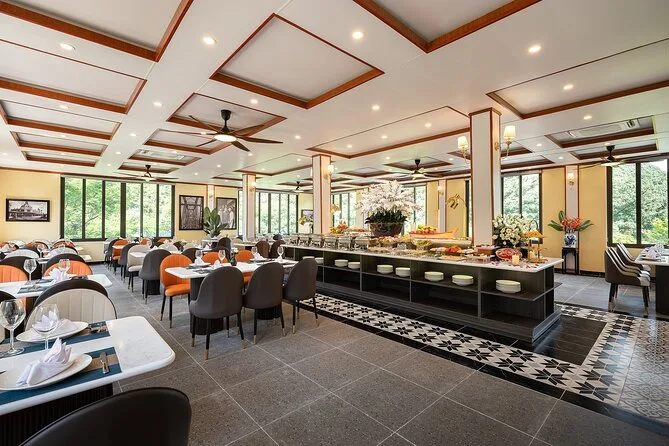 Tu día incluye traslado cómodo desde tu hotel en el casco antiguo de Hanoi, entradas a la Pagoda Bai Dinh, paseo en barco por Trang An y subida a Mua Cave, guía local de habla inglesa durante todo el recorrido, todas las entradas incluidas, agua embotellada a bordo y un almuerzo buffet vietnamita con platos regionales antes de regresar por la tarde.