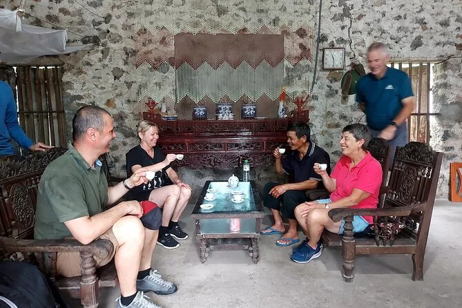 Lo primero que recuerdo es cómo la señora Lan me ofreció una tacita de té — sin prisa, con esa sonrisa tranquila que te hace sentir que has entrado en la vida real de alguien, no en un tour. Nuestro guía Minh acababa de bajarnos de las bicis (mis piernas ya lo notaban) tras atravesar esos verdes arrozales cerca de Tam Coc. El aire olía dulce y a tierra mojada a la vez, y se escuchaban risas de niños detrás de la casa. Minh nos contó que aquí viven tres generaciones juntas; intenté dar las gracias en vietnamita y todos se rieron. Li se rió tanto que casi derrama el té.