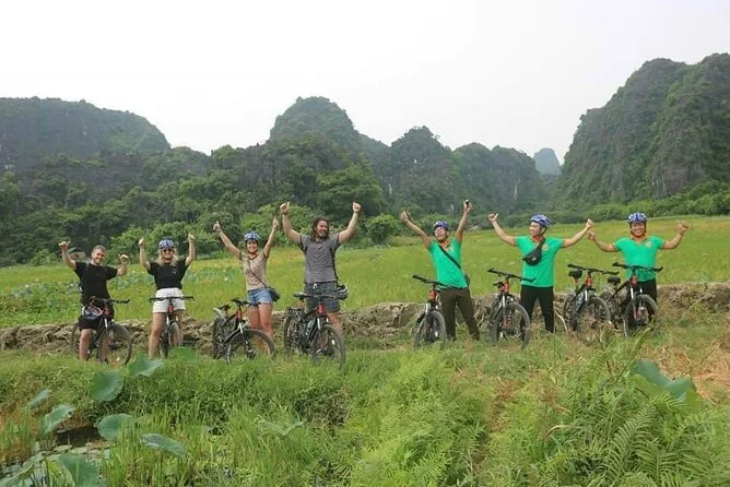 Tu día incluye recogida y regreso en furgoneta de lujo desde el Barrio Antiguo de Hanoi, todas las entradas para Hoa Lu, Mua Cave y Tam Coc, dos botellas de agua por persona, poncho o paraguas en caso de lluvia, un almuerzo auténtico vietnamita con más de diez platos en un restaurante local, uso de bicicleta para recorrer caminos de pueblo si quieres, y la guía experta local en inglés durante toda la experiencia antes de volver a Hanoi por la tarde.