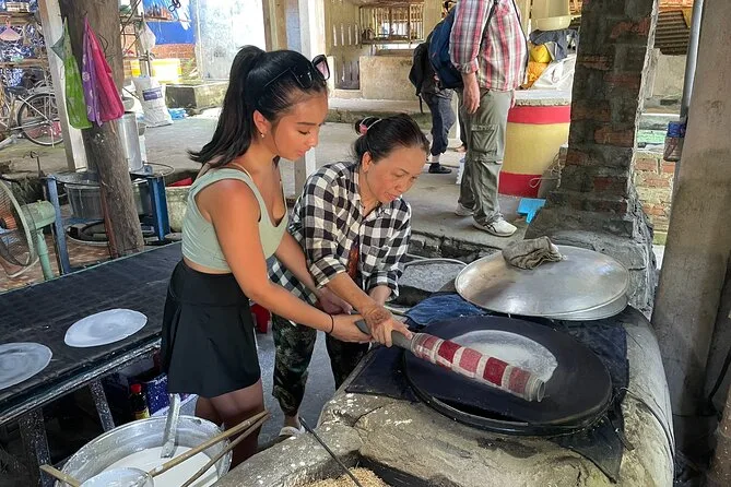 Sí, visitarás una casa local donde aprenderás a hacer papel de arroz y podrás probar tu propia creación.