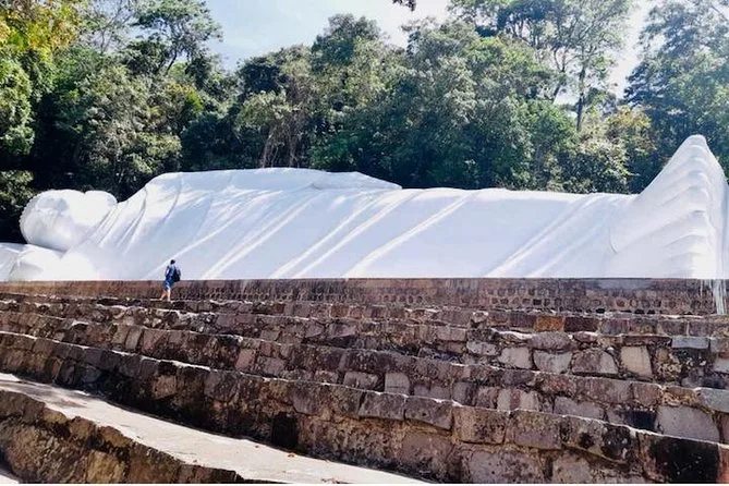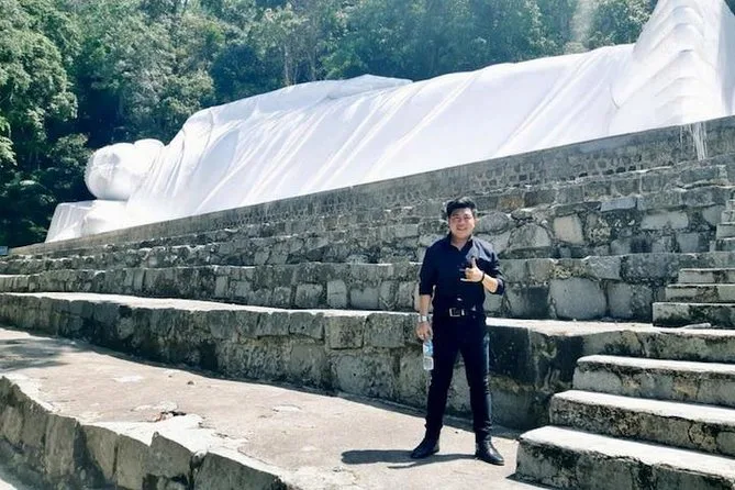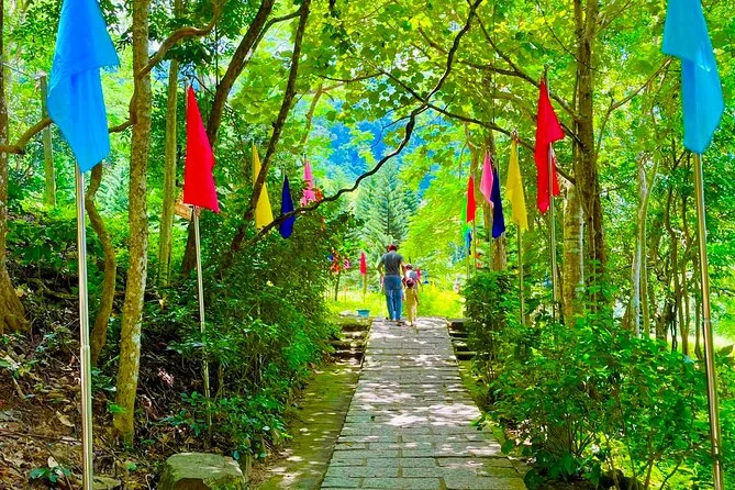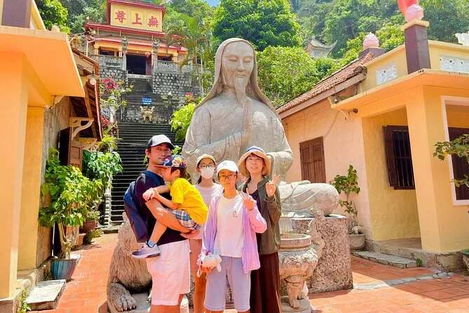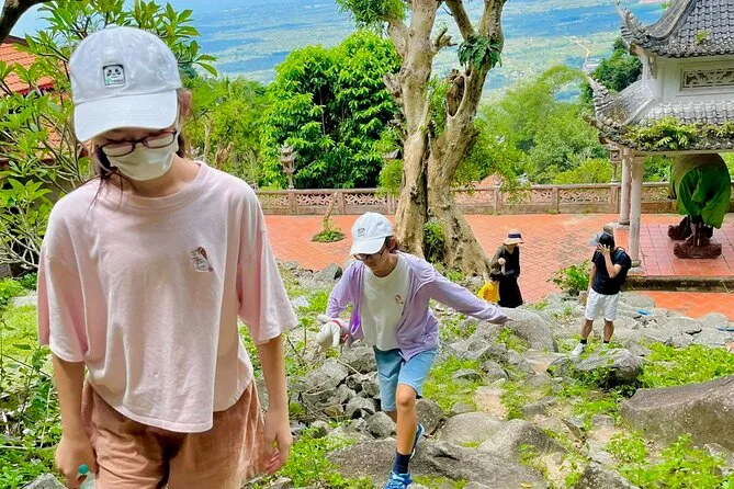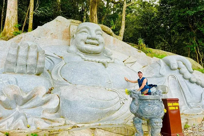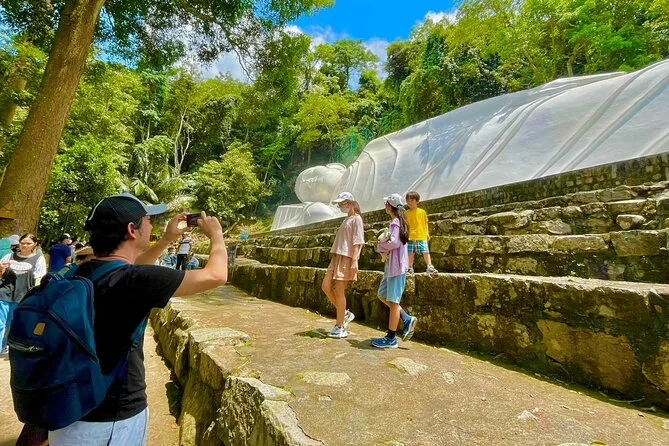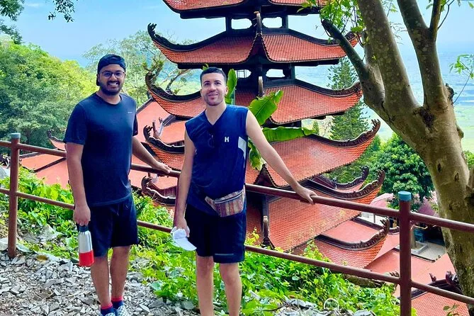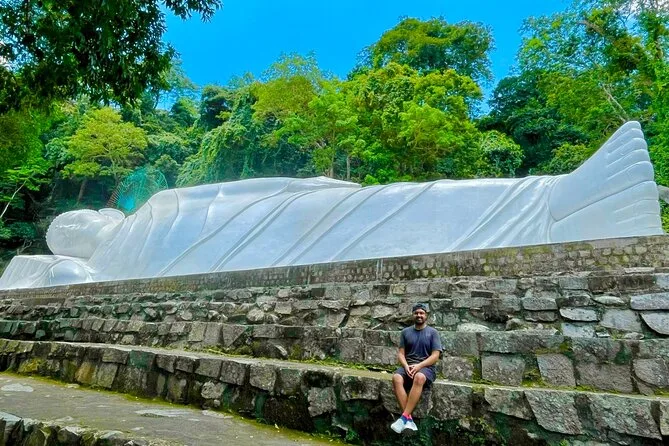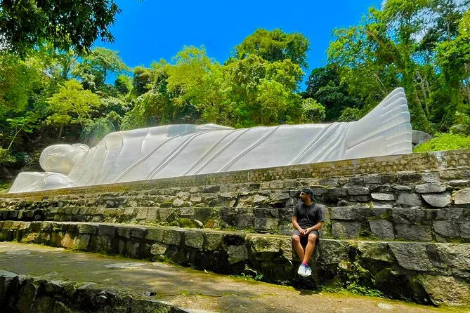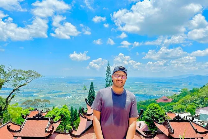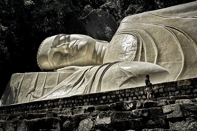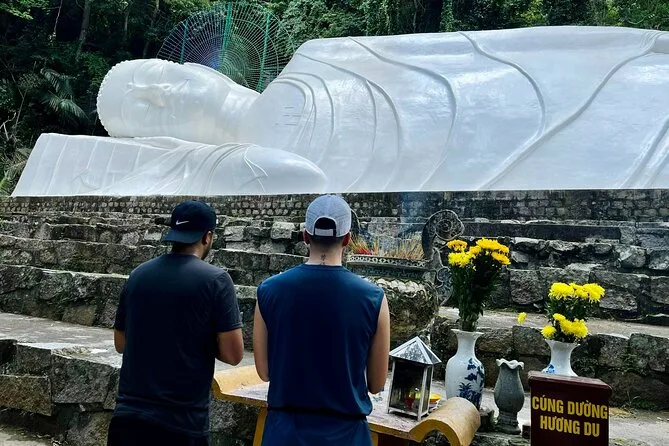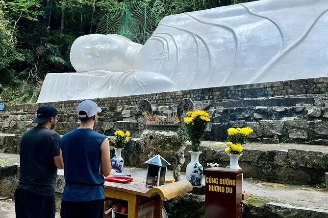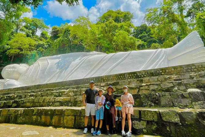 Subirás en un teleférico moderno para disfrutar de vistas panorámicas antes de visitar la pagoda Linh Son Truong Tho y la estatua del Buda reclinado.