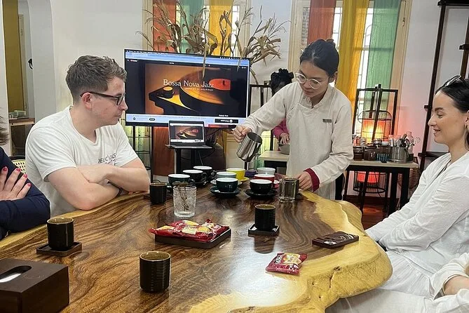 Entrarás a una tranquila villa en Hanoi para preparar tu propio café vietnamita — ya sea de huevo, coco o incluso de sal si te animas. Prueba lo que hagas, disfruta un snack local, escucha las historias de tu guía sobre su finca familiar y llévate las recetas junto con esa sensación cálida que solo el viaje y la conexión real con la gente pueden dejar.