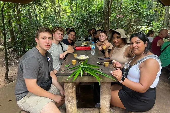 Tu día incluye traslados ida y vuelta en limusina desde hoteles céntricos de Ho Chi Minh (Distritos 1–4), entradas a los túneles de Cu Chi y todos los paseos en bote en My Tho, guía en inglés durante todo el recorrido, seguro de viaje para tu tranquilidad, almuerzo vietnamita (con opciones veganas), frutas de temporada con té de miel durante la visita al Delta del Mekong, agua mineral y una cerveza o refresco antes de regresar por la tarde.
